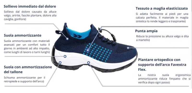 Assolutamente sì! Le Favextra Flex sono progettate con un’ammortizzazione superiore e un supporto mirato che avvolge il piede, alleviando la pressione sulle articolazioni e permettendoti di camminare con una leggerezza che non credevi più possibile.